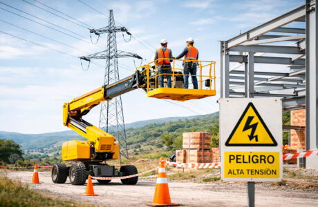 Trabajo seguro con plataformas elevadoras cerca de líneas eléctricas.