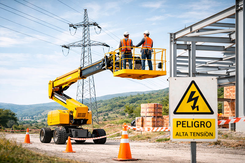 Trabajo seguro con plataformas elevadoras cerca de líneas eléctricas.